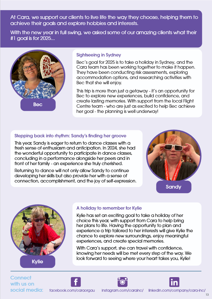 From building confidence at family events to planning holidays and pursuing hobbies, our clients set meaningful goals for 2025. Our teams are proud to provide the support, resources, and encouragement needed to make these aspirations a reality.